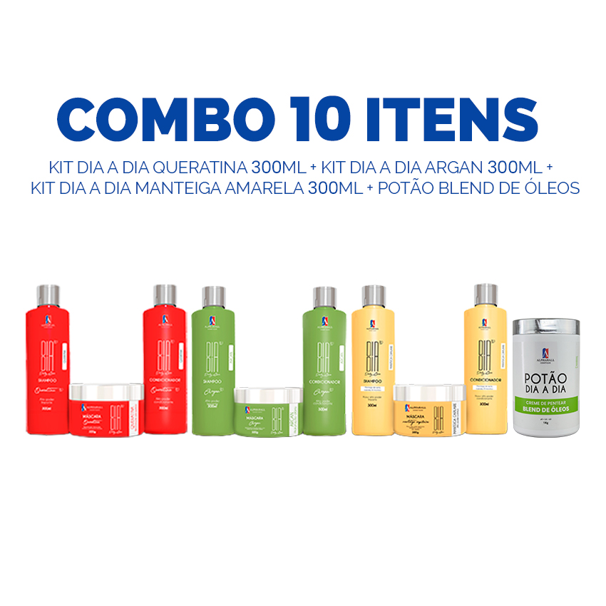 O Combo 10 Itens Alphahall é a combinação perfeita para cabelos que precisam de hidratação profunda e leveza no dia a dia. Ele reúne três kits essenciais e um creme de pentear que facilita o desembaraço e mantém os fios macios e hidratados.